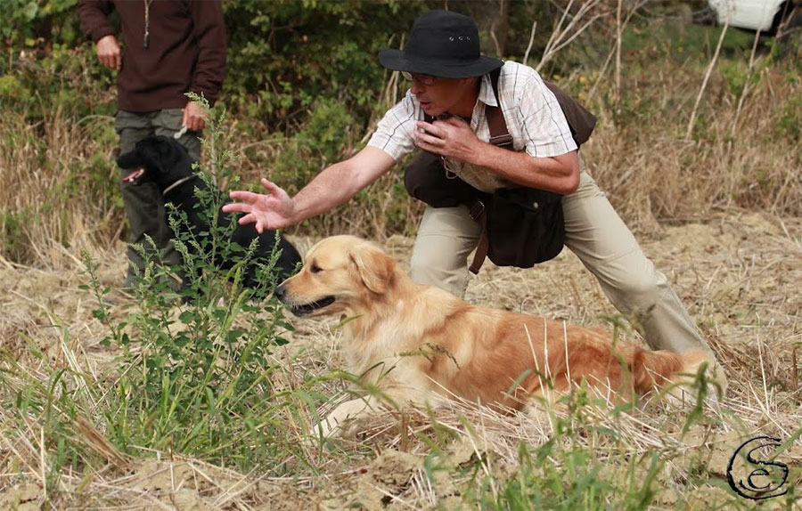 Nour et son maître Jean, la Pomarède, field à la française, automne 2012