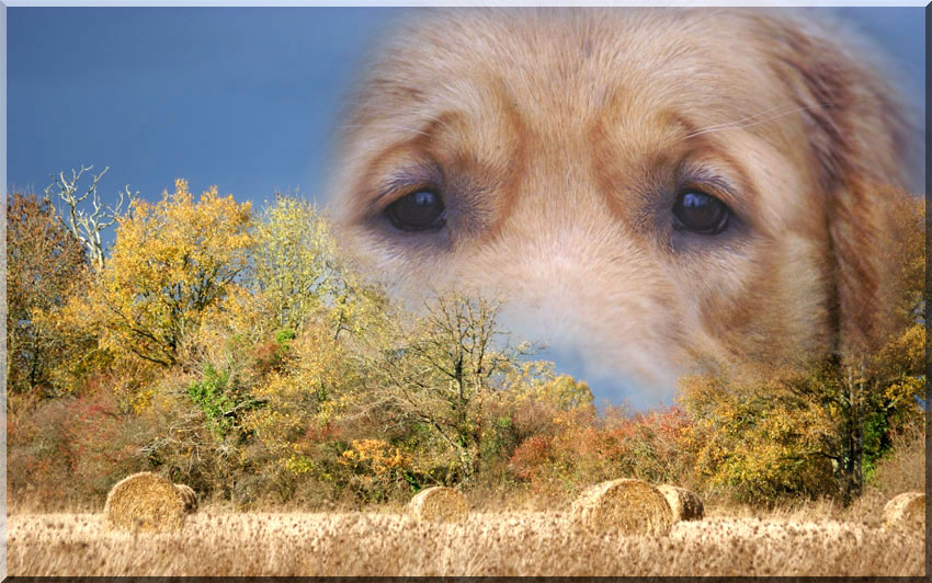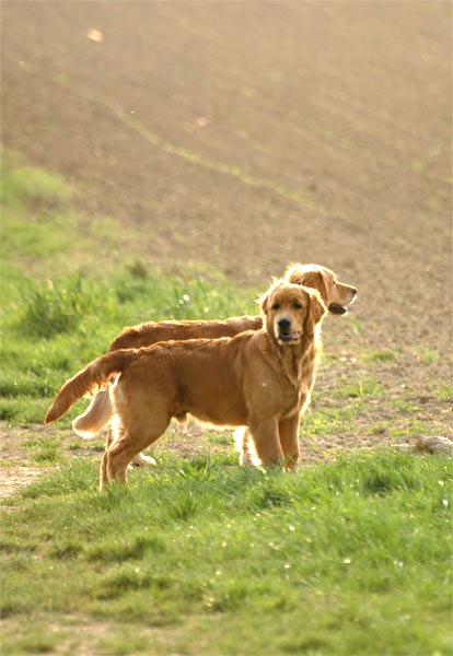 Le petit Tavio peut-être déjà un grand chiot sage, surveillant les champs de colza autour de la maison.