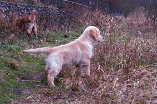 Exc. dessus, fouet dans la ligne, cage thoracique très mature. Rein court. Excellent caractère, couvre bien le terrain.