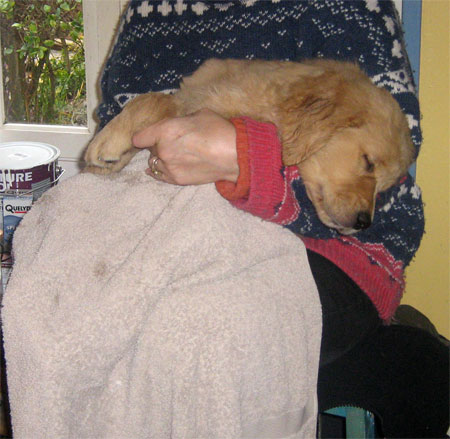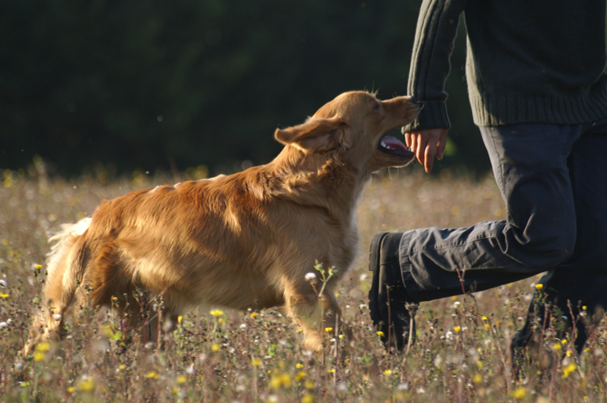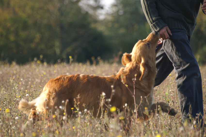 Dew court comme lui, plaquée à la jambe, et attrapant les pulls entre les dents ! Pauvres pulls...