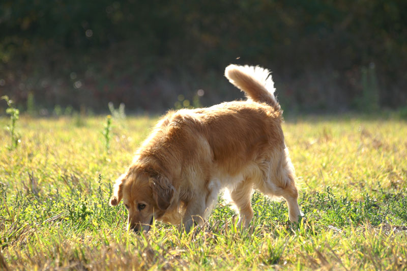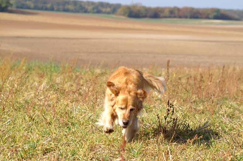 Outtah a 10 ans et demi, elle fait toutes les promenades avec la meute, et s'offre même un petit rapport d'apportable, lorsque son maître la sollicite !
