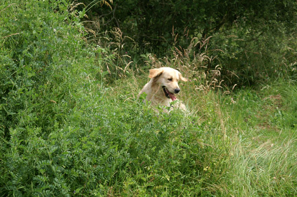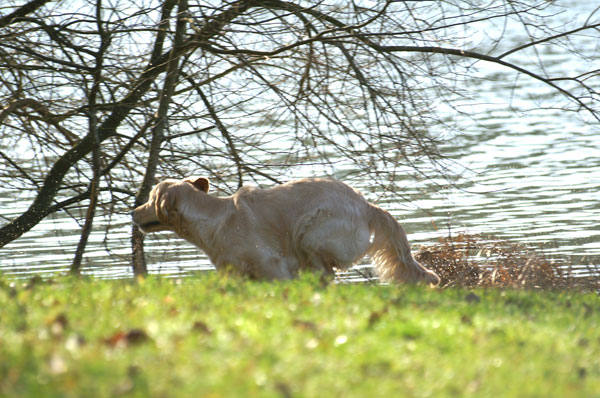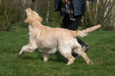 Pony est une vraie retriever, comme Vamakko, Daloup et Octavio. Elle suit tous les entraînements avec beauoup de sérieux!