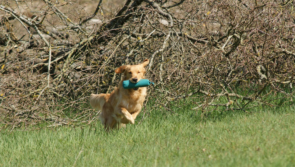 Solo est arrivé en juin 2011 au Pays des Gelfes, confié à mes soins par mon amie Béatrice Loetscher "Funnyline Fieldquest". Un merveilleux petit elfe, tout en finesse et générosité, mon petit "prof" en matière éducation retriever. Parce que "le doute est un bon oreiller pour une tête bien faite", l'apprentissage est constant et le travail avec nos merveilleux golden n'est jamais dogmatique. Merci, Béa.