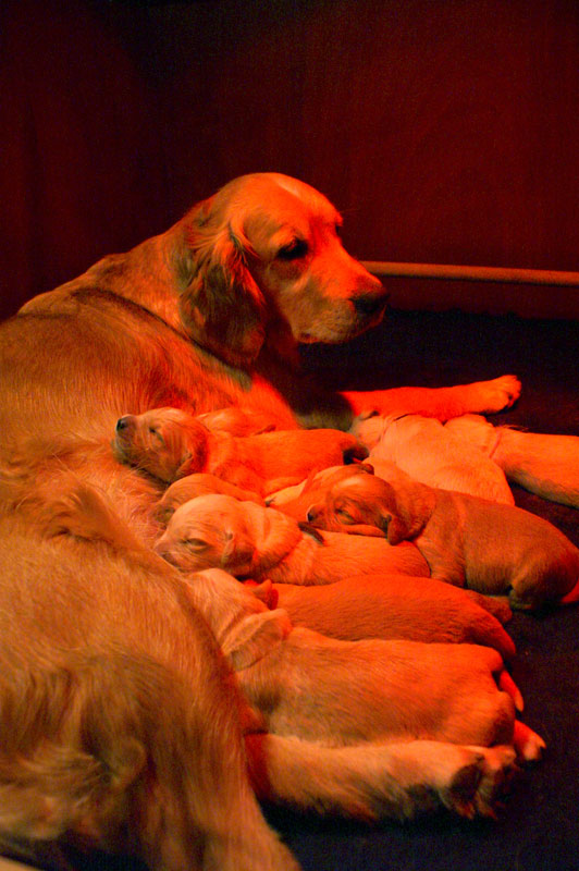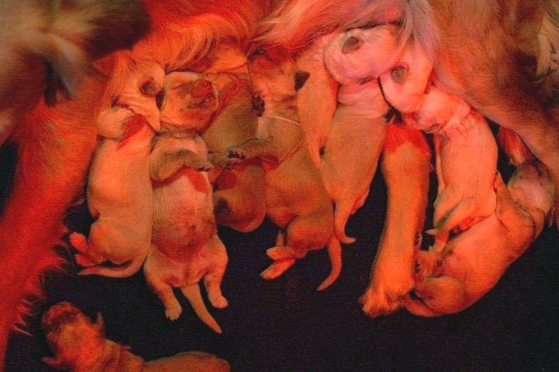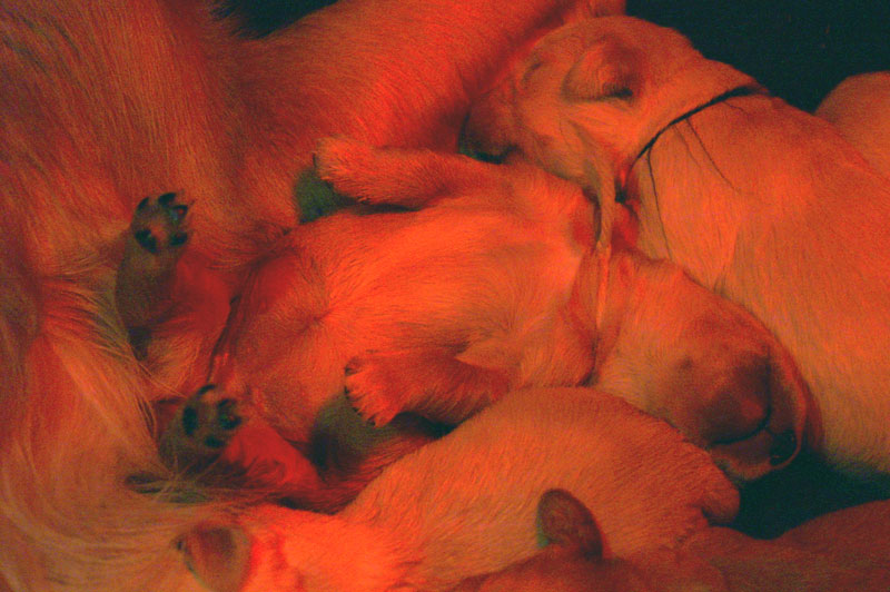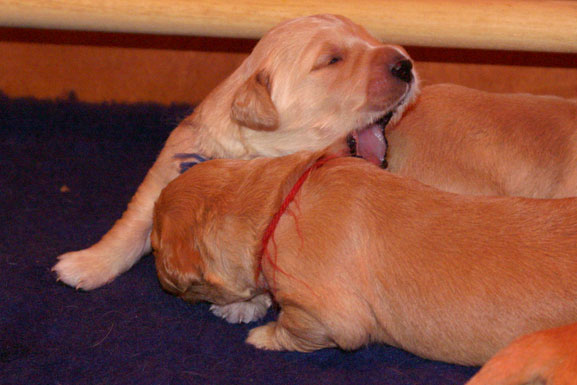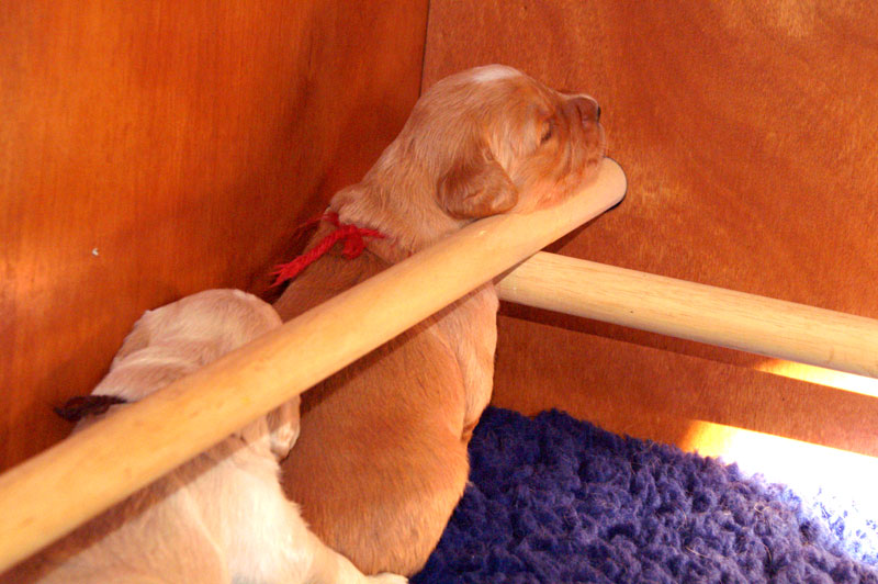 11 jours, les yeux ouverts, 15 jours, on bouge dans tous les sens... A nous le vaste périmètre de la caisse de mise bas!