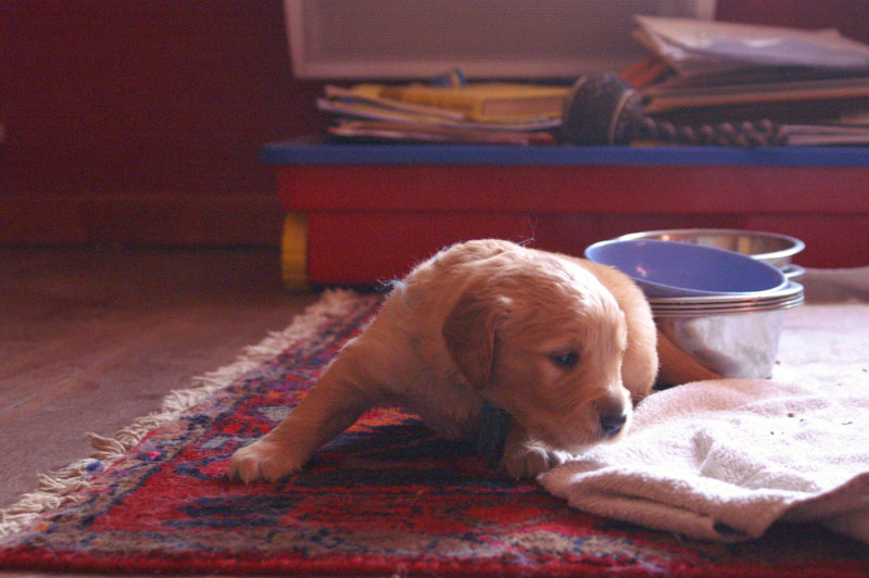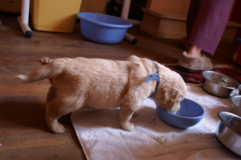 Et voilà, nous en sommes aux premières bouillies, et en 4 jours à peine, avec rigueur et discipline on essaye de devenir des goldens civilisés...