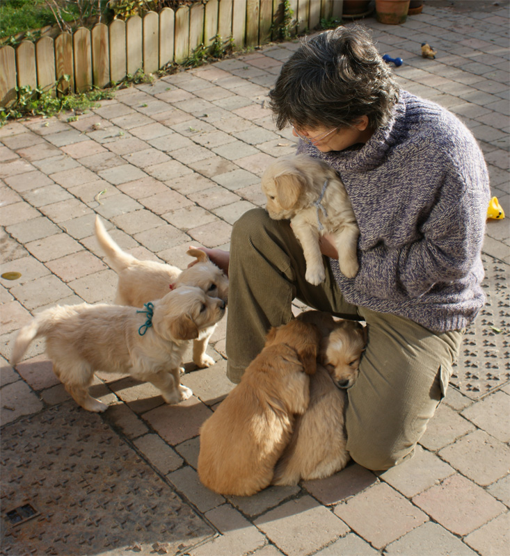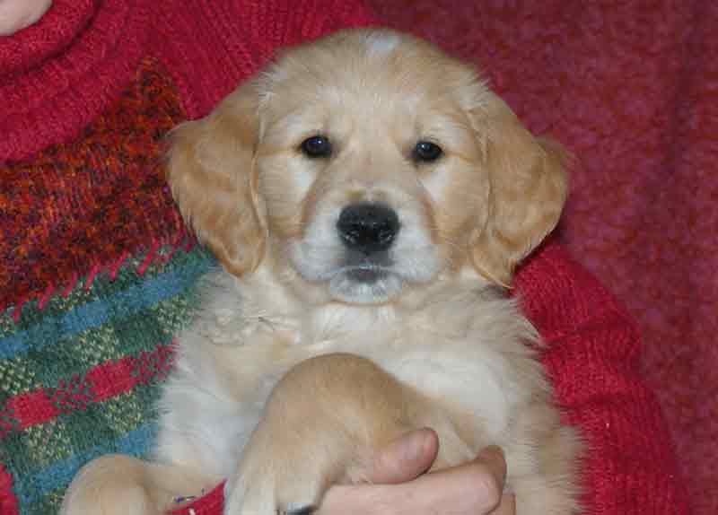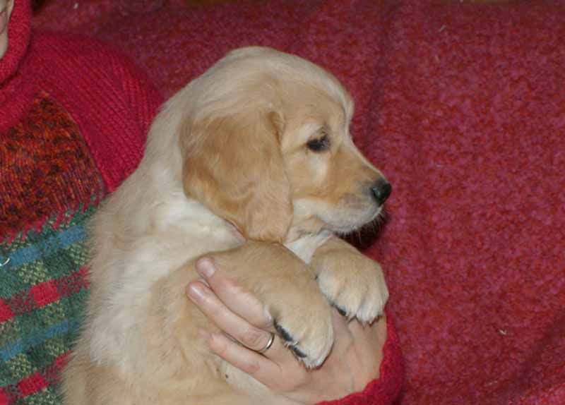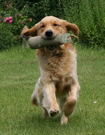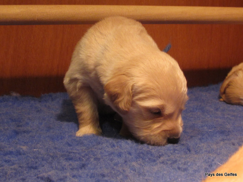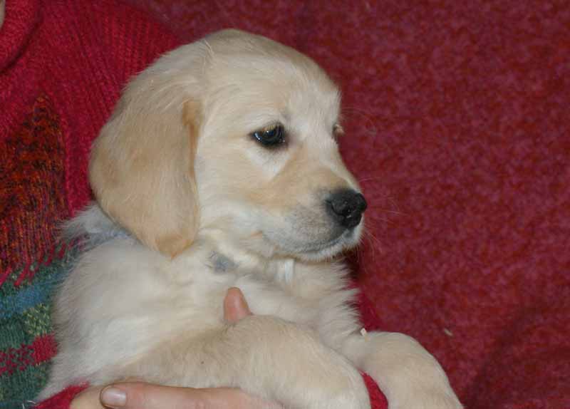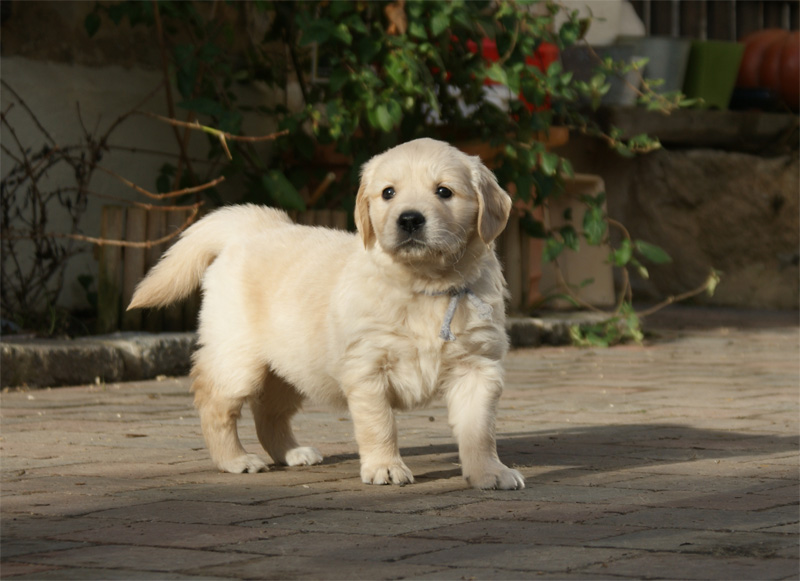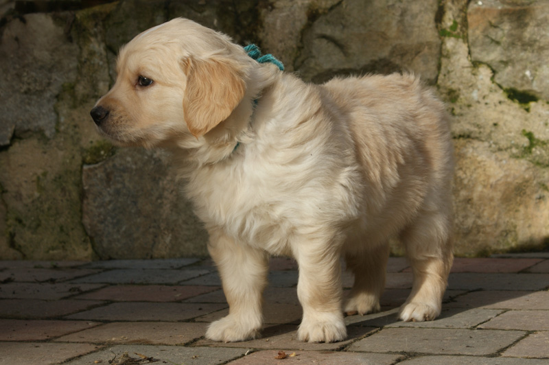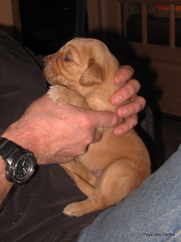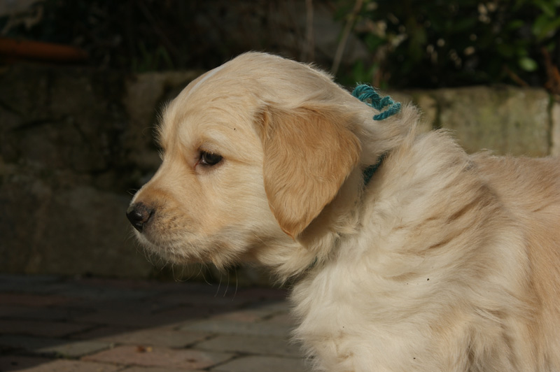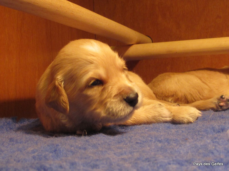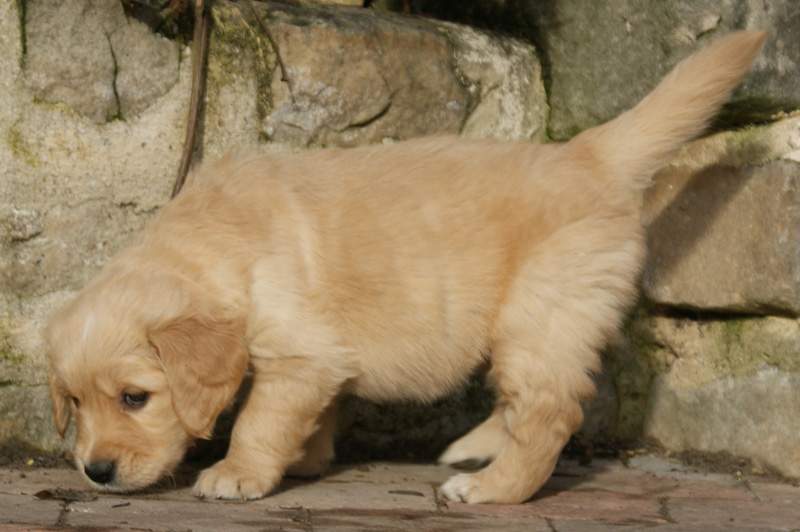 Merci, Jean, pour l'immense confiance que tu nous fais en nous confiant Nousch ! Les petits sont attendus pour la fin novembre. Le Papa fait partie de l'équipe des Fields de Mauny désormais, magnifique jeune golden fauve orangé, il a pour père Vaillant des Fields de Mauny, et pour mère Acouna des Mystères de l'Ouest. Joyeux et très équilibré, il a été remarqué à la nartionale d'élevage de Sully sur Loire en septembre 2009, récompensé par une première place excellente classe Jeune.