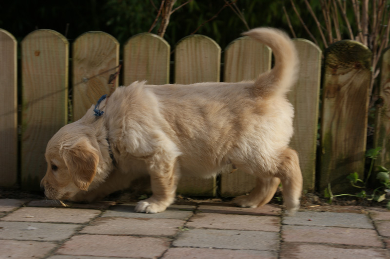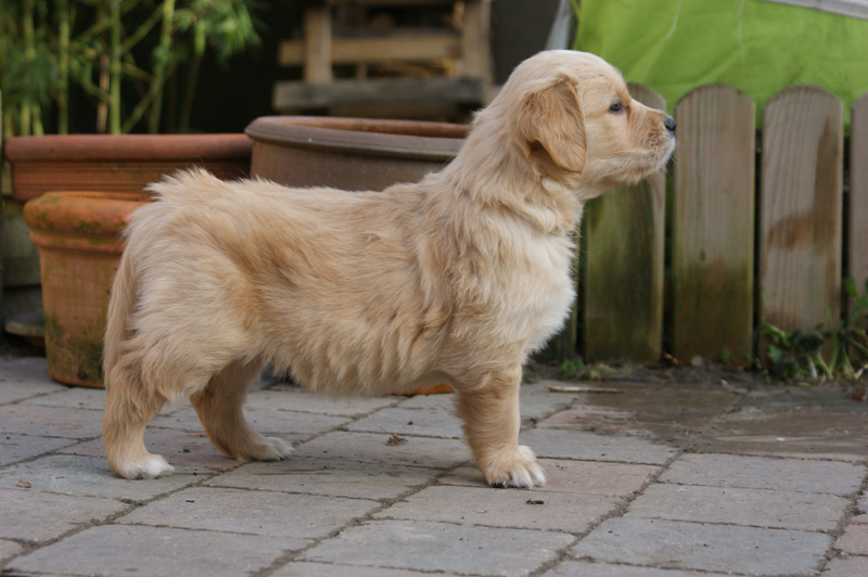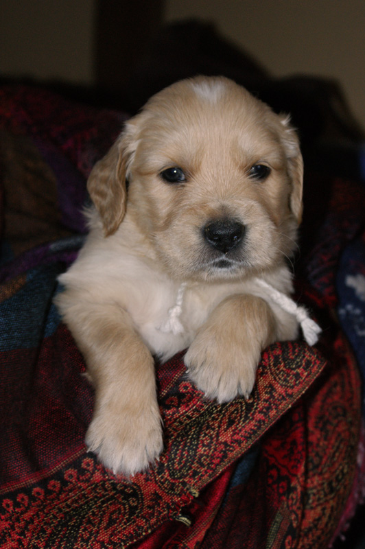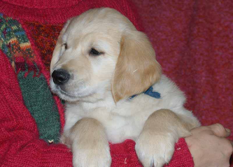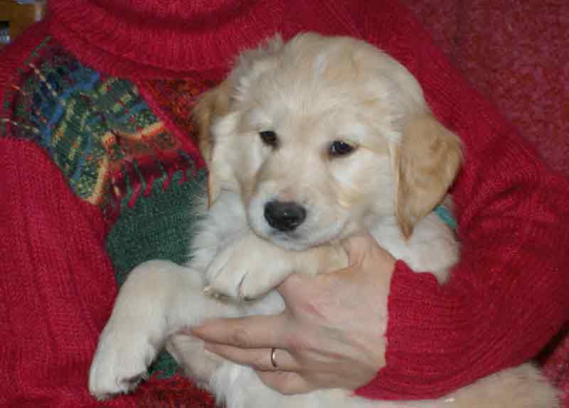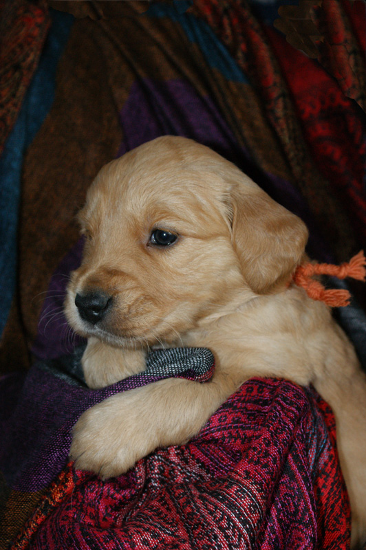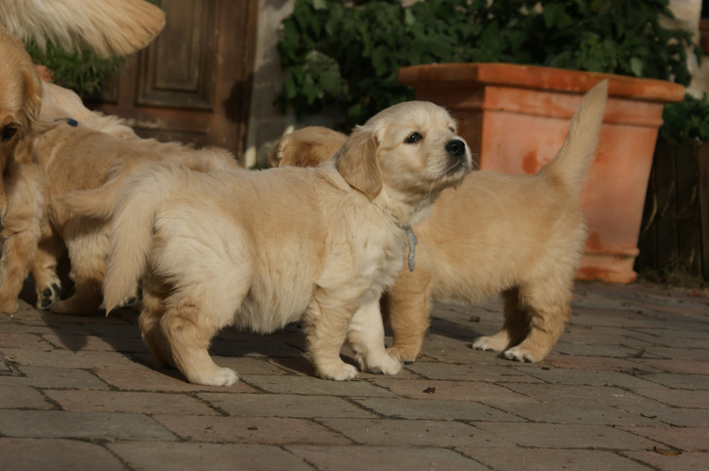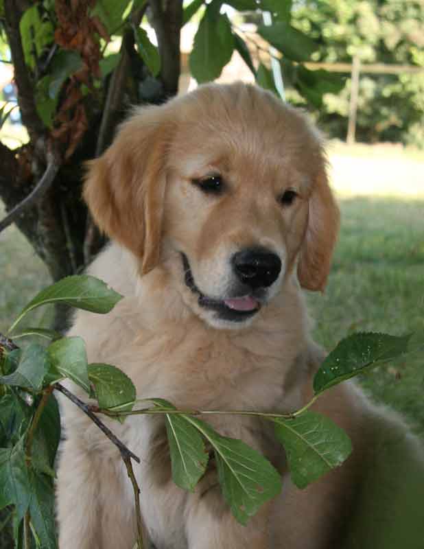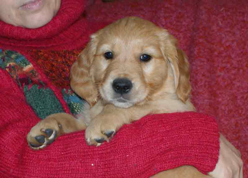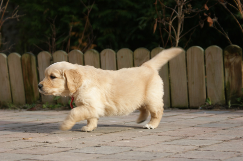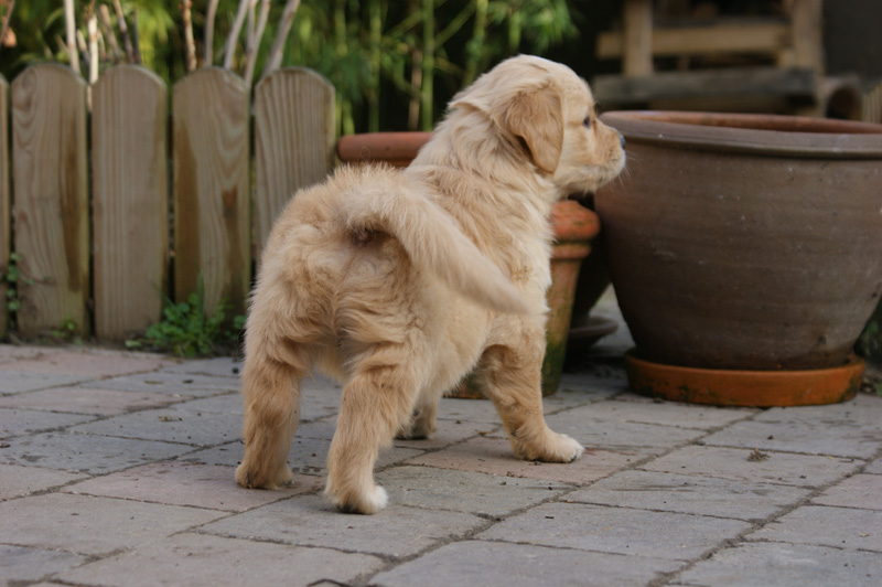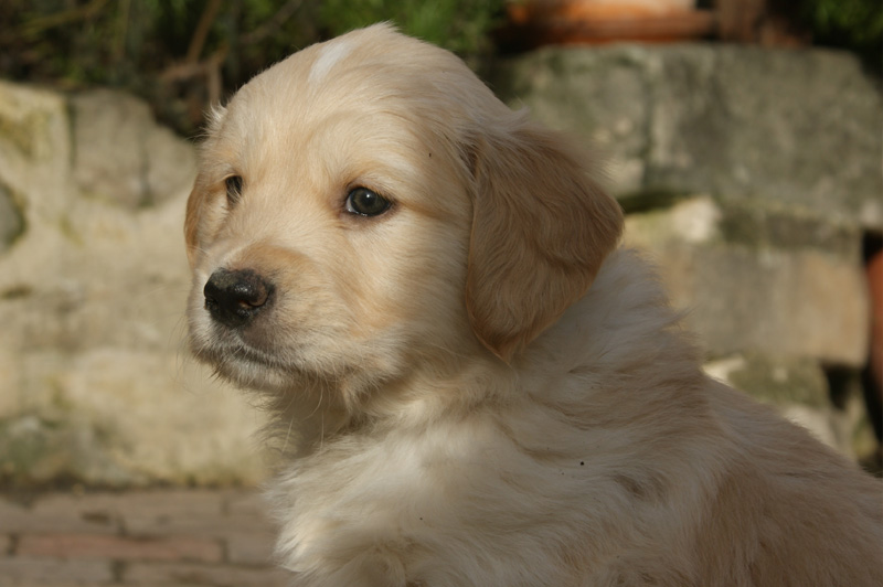 Merci, Jean, pour l'immense confiance que tu nous fais en nous confiant Nousch ! Les petits sont attendus pour la fin novembre. Le Papa fait partie de l'équipe des Fields de Mauny désormais, magnifique jeune golden fauve orangé, il a pour père Vaillant des Fields de Mauny, et pour mère Acouna des Mystères de l'Ouest. Joyeux et très équilibré, il a été remarqué à la nartionale d'élevage de Sully sur Loire en septembre 2009, récompensé par une première place excellente classe Jeune.