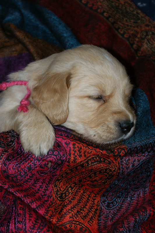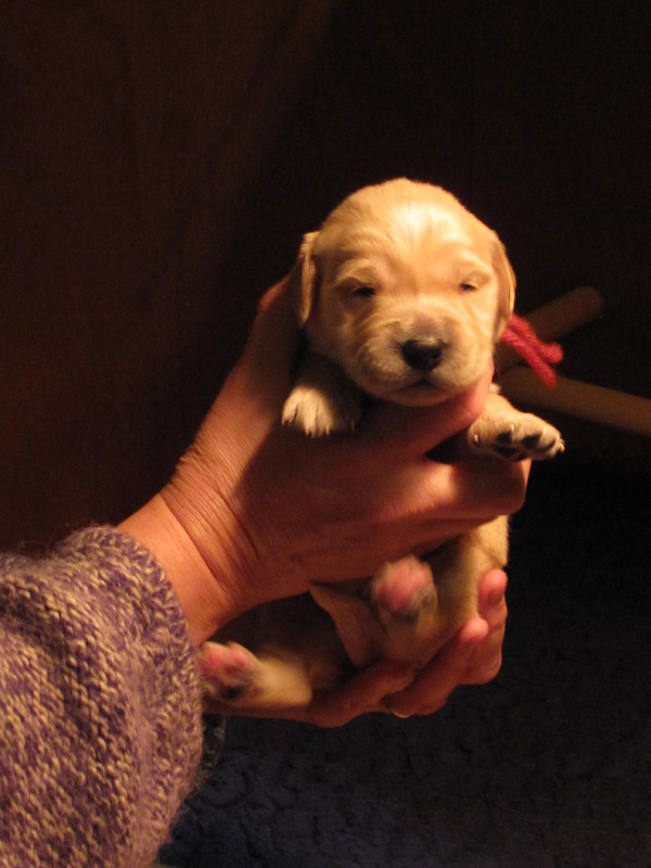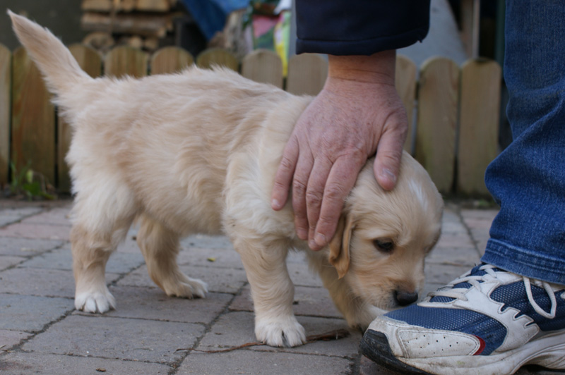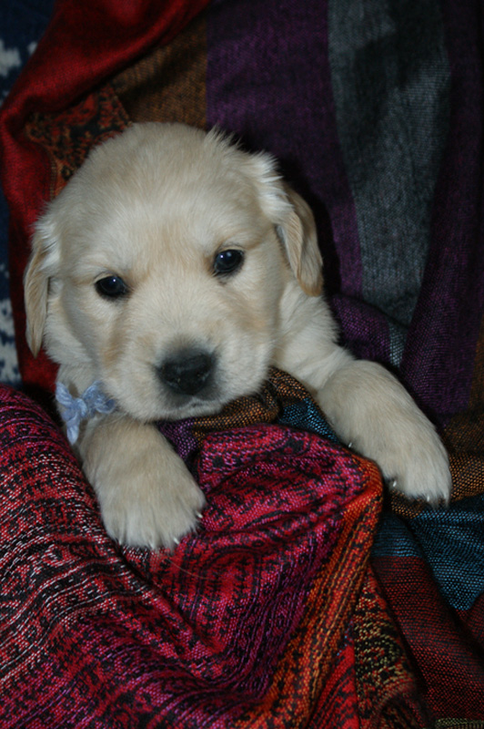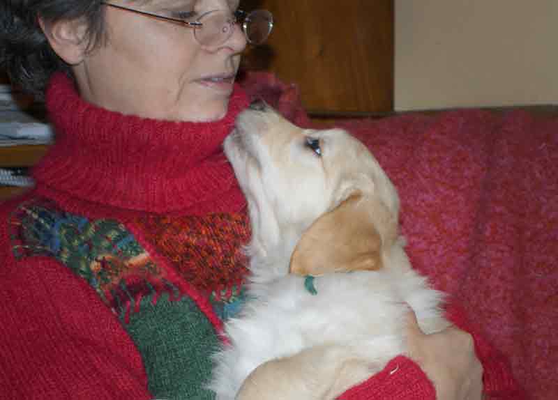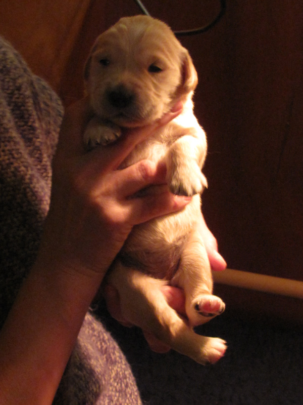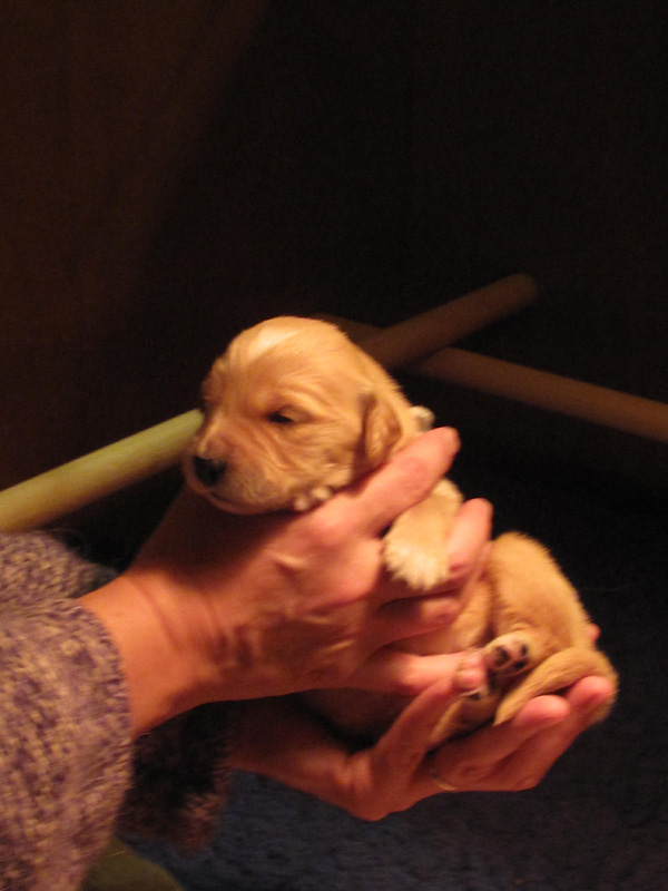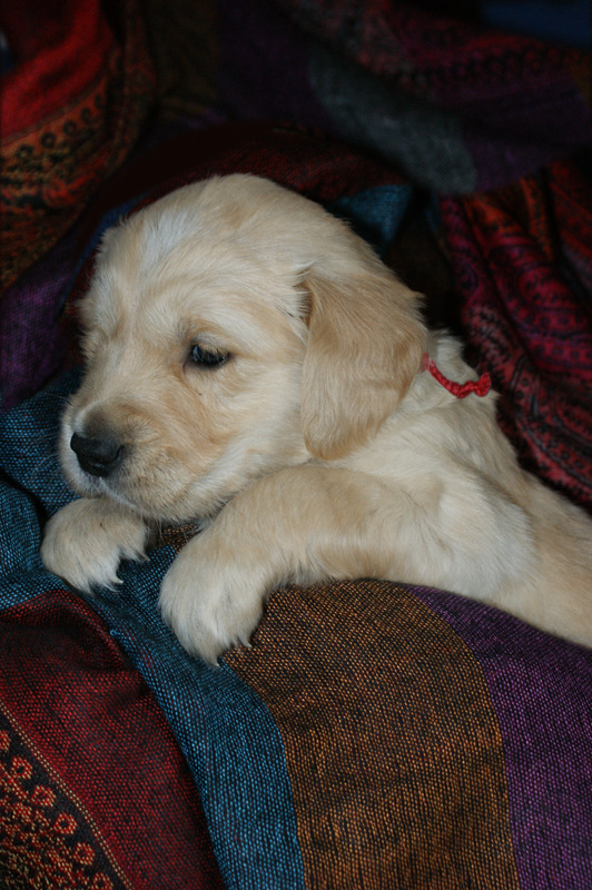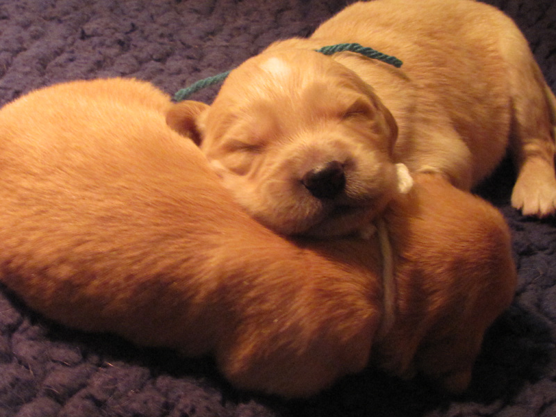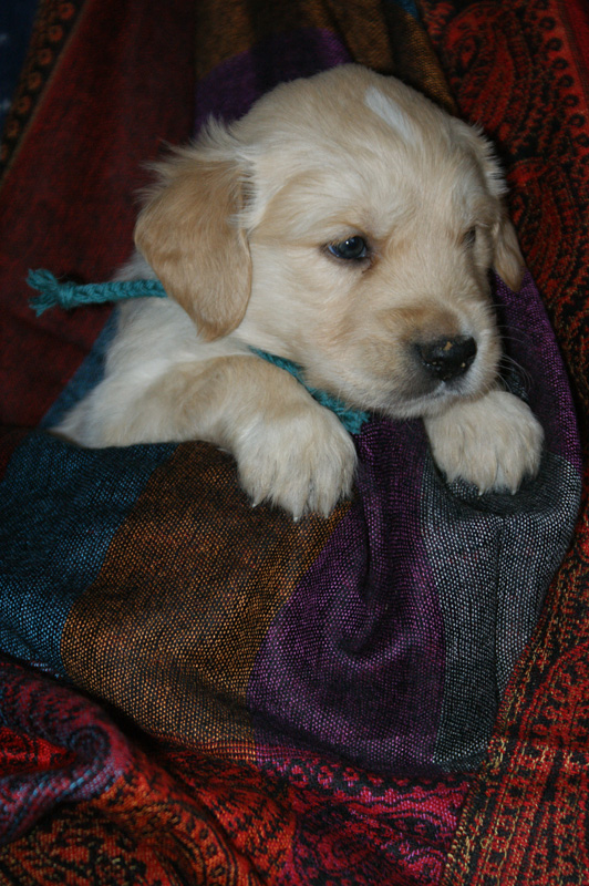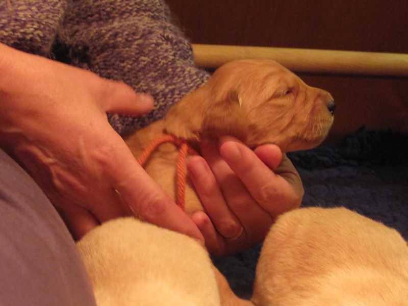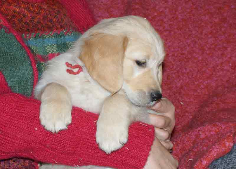 Merci, Jean, pour l'immense confiance que tu nous fais en nous confiant Nousch ! Les petits sont attendus pour la fin novembre. Le Papa fait partie de l'équipe des Fields de Mauny désormais, magnifique jeune golden fauve orangé, il a pour père Vaillant des Fields de Mauny, et pour mère Acouna des Mystères de l'Ouest. Joyeux et très équilibré, il a été remarqué à la nartionale d'élevage de Sully sur Loire en septembre 2009, récompensé par une première place excellente classe Jeune.
