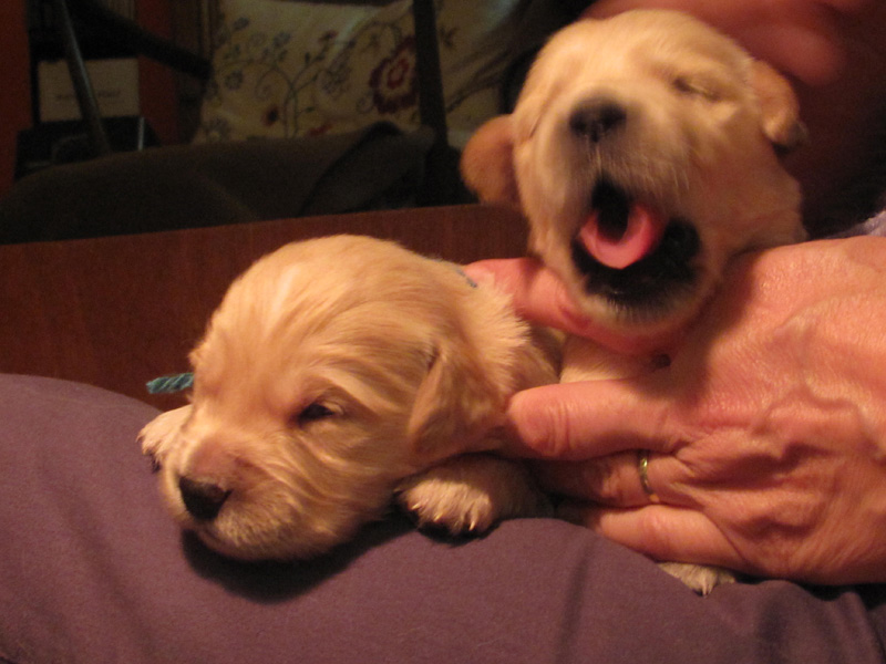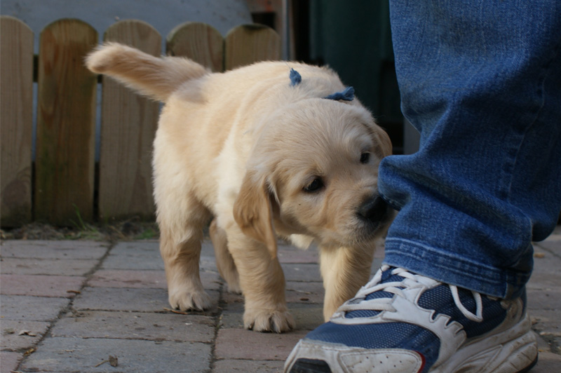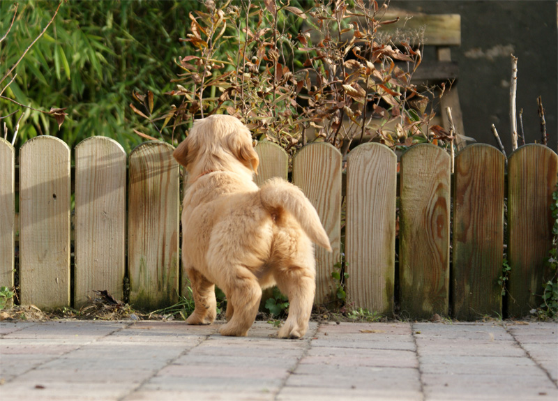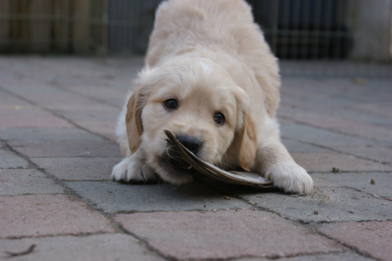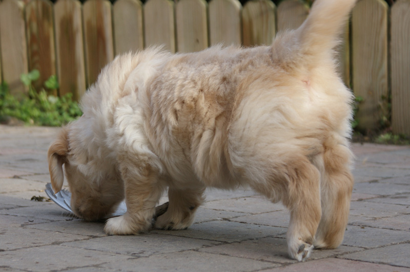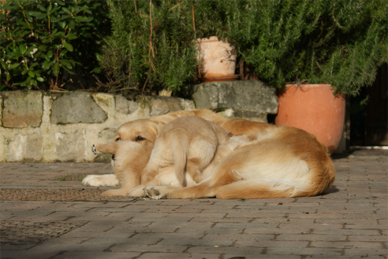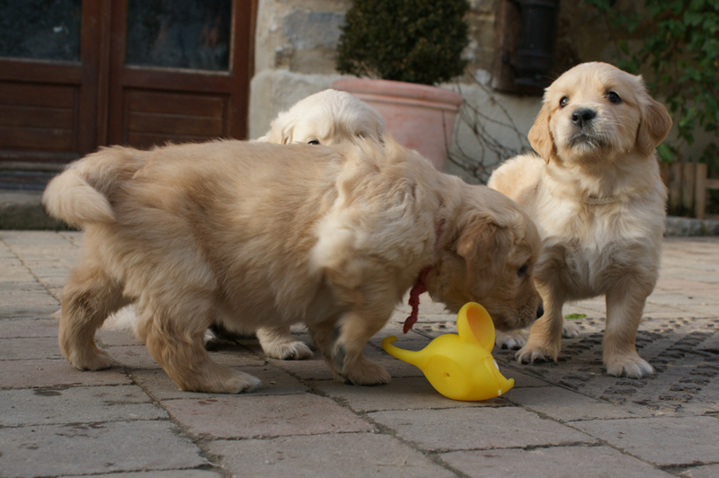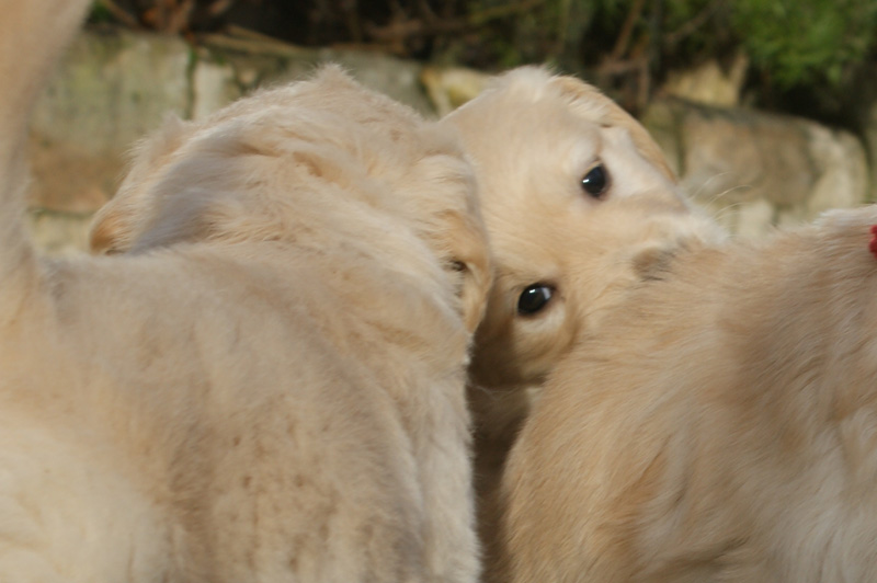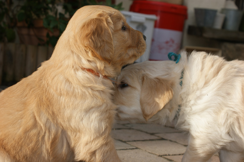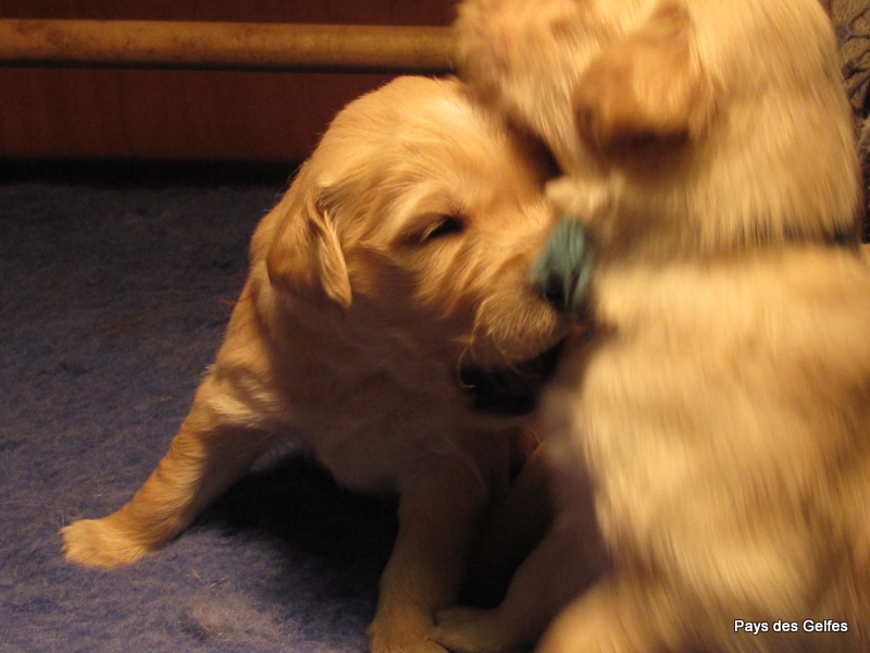 Simulacre de mini combats pour mini goldens, pas encore de dents, c'est pour rire.