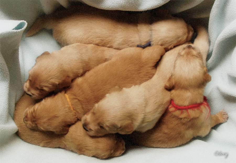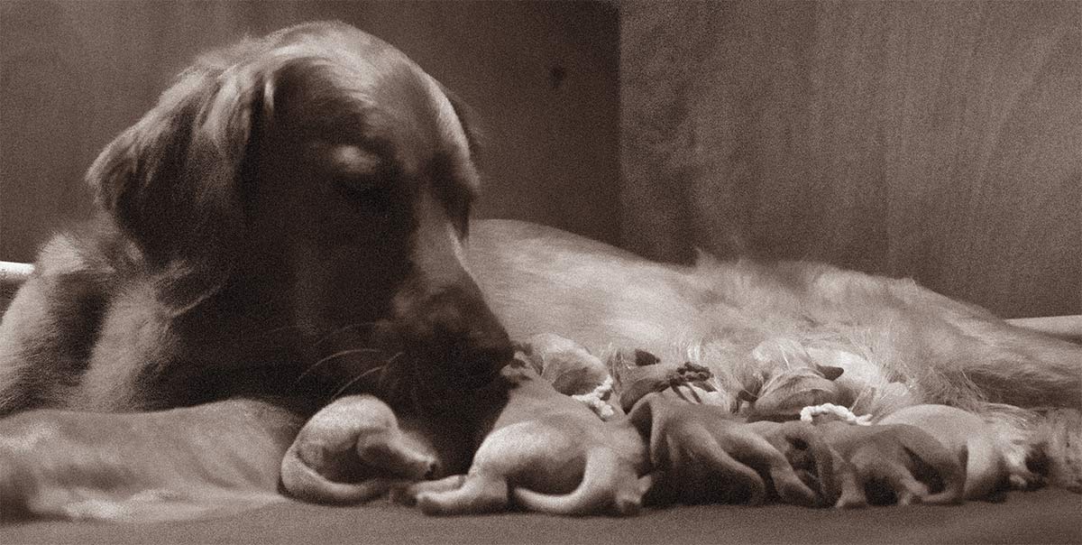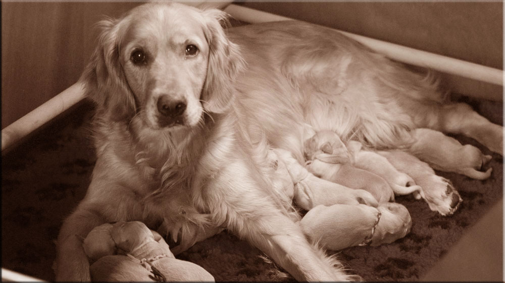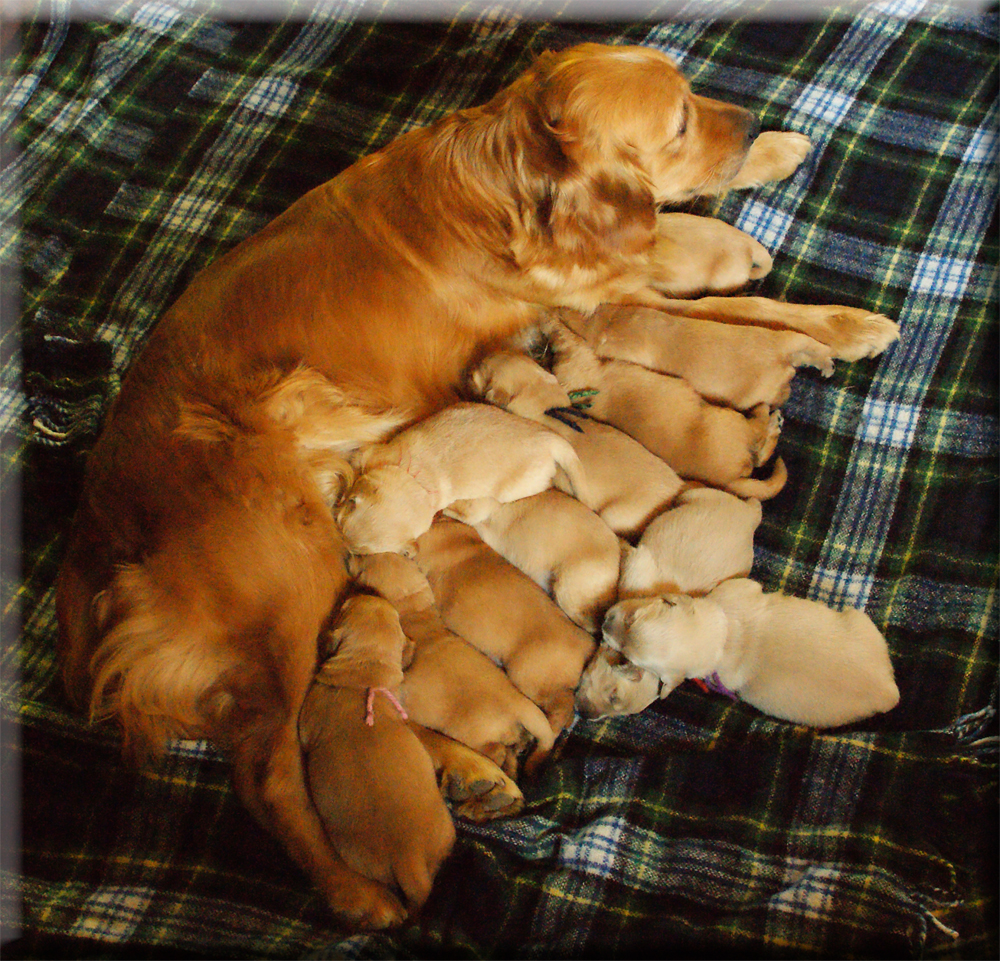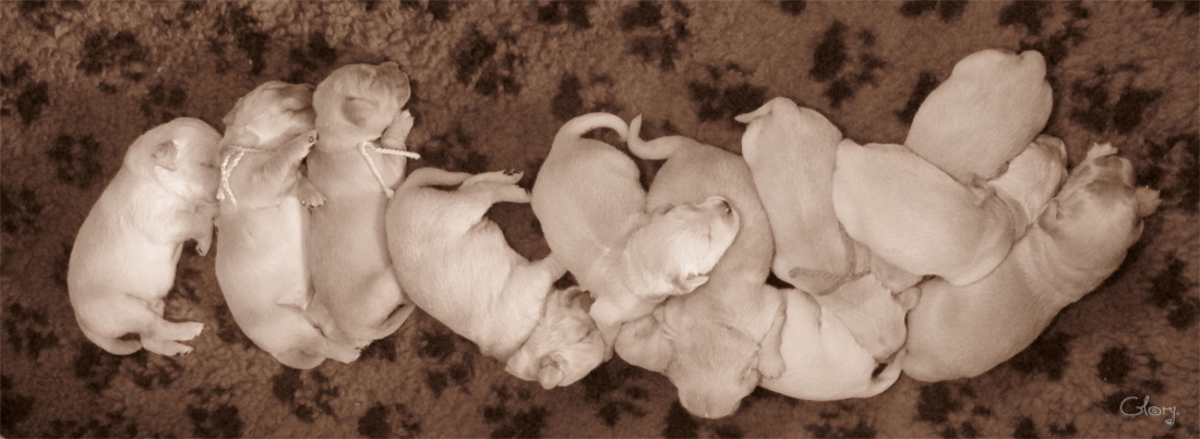 Naissance des petits de Dew et Elton, le jour où Elton est titré "Champion Beau et Bon à l'anglaise 2011" par le Retriever Club de France.