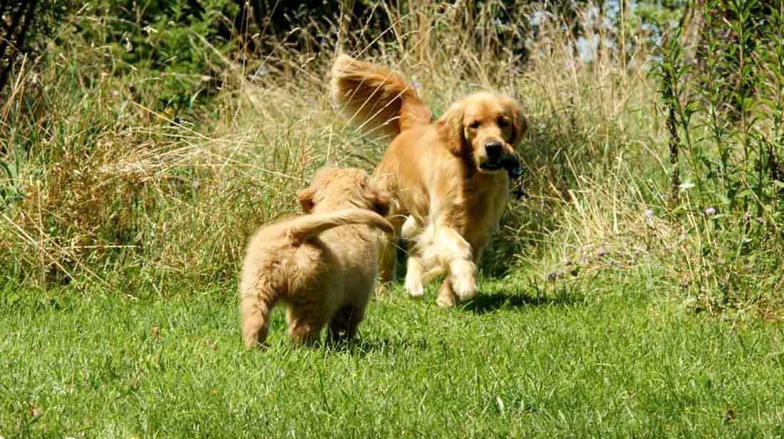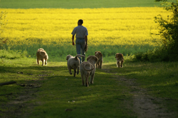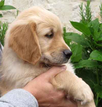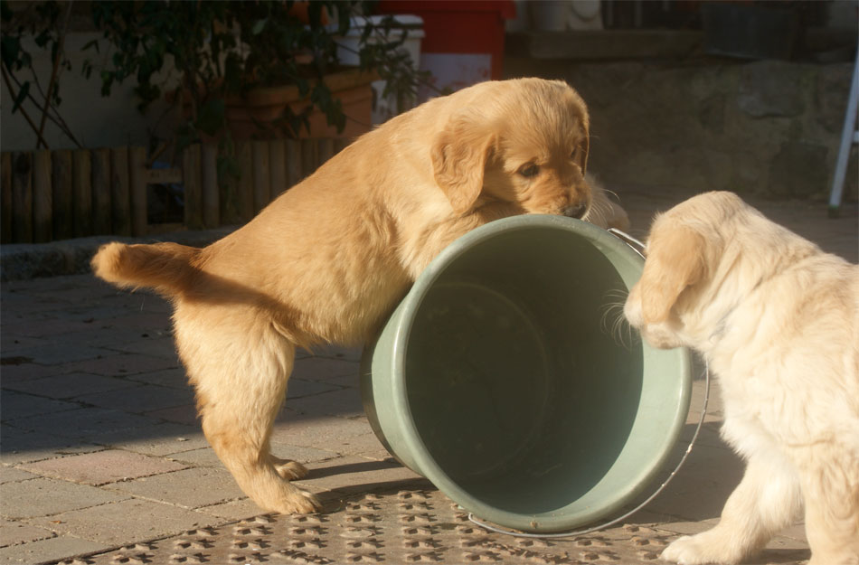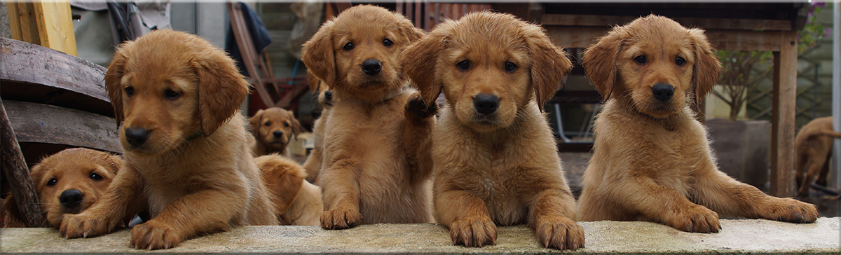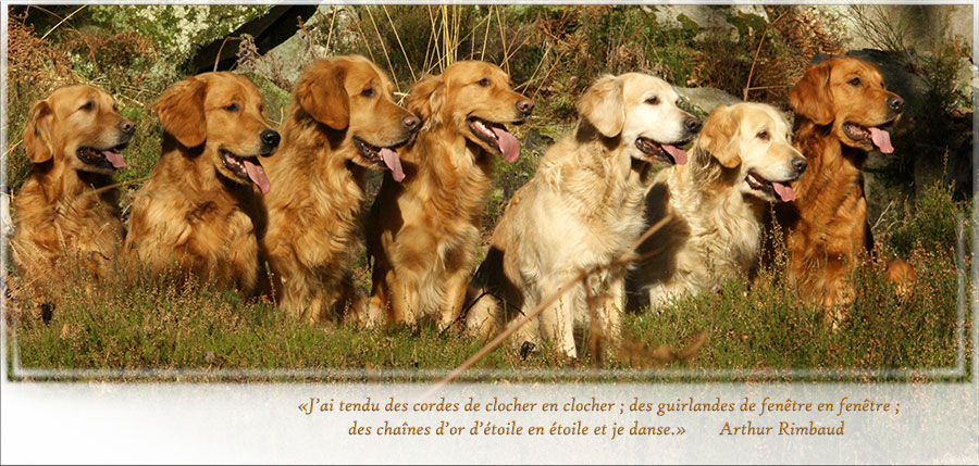 suivez nous sur Facebook désormais ! https://www.facebook.com/goldendesgelfes/ Du nouveau au Pays des Gelfes, notre Edehlwen a mis au monde le 18 avril 2016 dix petits : 4 femelles immédiatement placées, six mâles - dont trois ont déjà rejoint leurs familles. Monsieur gris "Menelmacar" reste disponible Le père, Aspen, est un Champion de travail, lignée américaine, très rarement utilisé en Europe. Il vit en Allemagne chez notre ami Jörg Brach. Les petits sont très équilibrés, des caractères doux et des tempéraments curieux et actifs. MANÎTHIL dite "Teddy Girl" restera au Pays des Gelfes !
