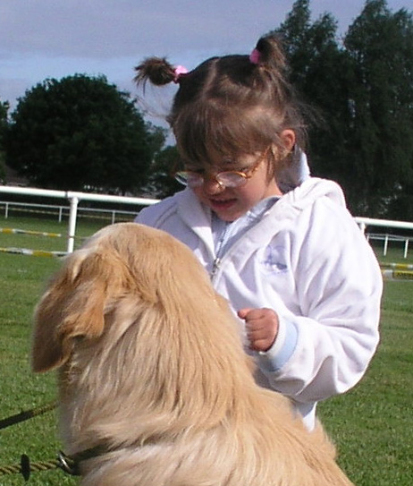 AUTISME SEVERE A Frieburg en Suisse, trop brièvement, nous avons rencontré Emilie et sa maman Laure. Les manifestations d'intérêt d'Emilie pour Daloup nous font regretter de ne pas pouvoir mettre ses deux là en plus grande complicité. Peut-être qu'avec le temps, et une plus grande expérience dans ce domaine, trouverions nous les bons exercices permettant à cette association enfant/chien de se généraliser avec bonheur.