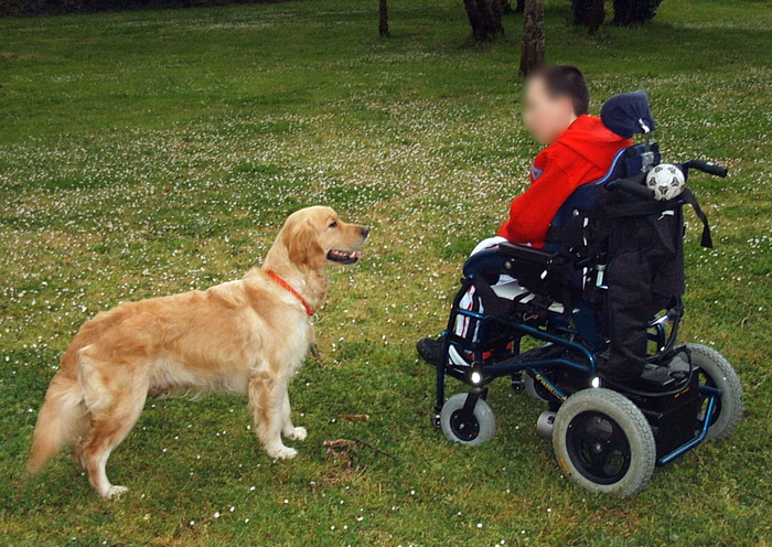 Le golden est réputé pour ses qualités exceptionnelles d'accompagnement de ses maîtres en toutes circonstances. Mais lorsque la vie réserve quelques surprises qui sortent de l'ordinaire ? Parfois, nous ne pouvons tout prévoir, et brutalement, un autre monde et une autre vie se profilent. Quelle place notre brave golden peut-il prendre dans cet univers qui n'est plus l'univers ordinaire ? Pas de miracle : le golden, même parfaitement éduqué en fonction du handicap qu'il accompagnera, reste un être vivant, avec ses limites, ses besoins spécifiques d'animal de compagnie. Mais sa présence sera un facteur étonnant d'équilibre voire de soin affectif auprès des personnes qu'il accompagnera. Nous n'avons pas l'ambition de qualifier nos golden de "thérapeutes". Mais nous avons pu constater qu'en préservant la sélection de ceux nés à la maison, en éduquant avec le plus grand soin, à travers la vie de tous les jours mais également en pratiquant les working tests, en les soumettant aux épreuves typiques des retrievers soit les sélectifs A et B, puis en les faisant concourir en field trial, nous constatons que nous exerçons leur intelligence naturelle, en les sollicitant dans leur domaine spécifique. Le hasard nous a conduit vers le monde de l'autisme. ***
